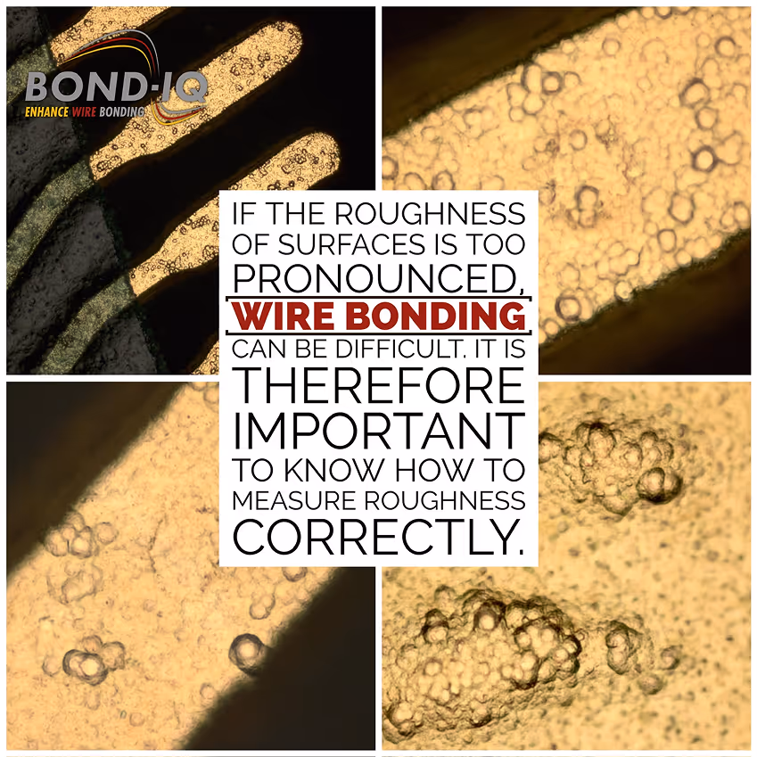 ✅ Rz values or Sz values (or even better S10z values) are suitable for evaluation. However, this value expresses only one property of bond surfaces. It must be accompanied by other values. This is similar to the test methods for wire bonds (visual, mechanical and data-based) – here, too, one test alone is often not sufficient.